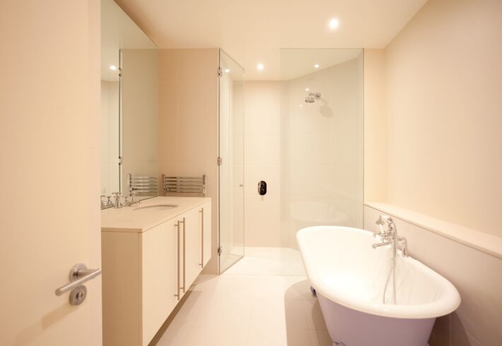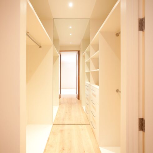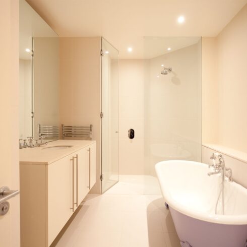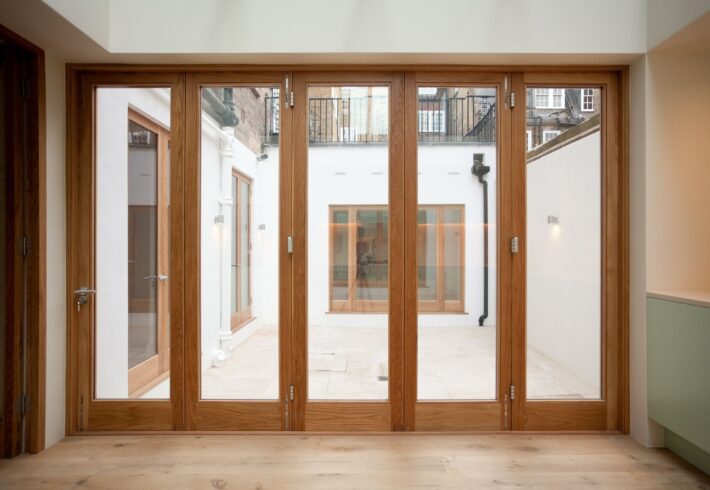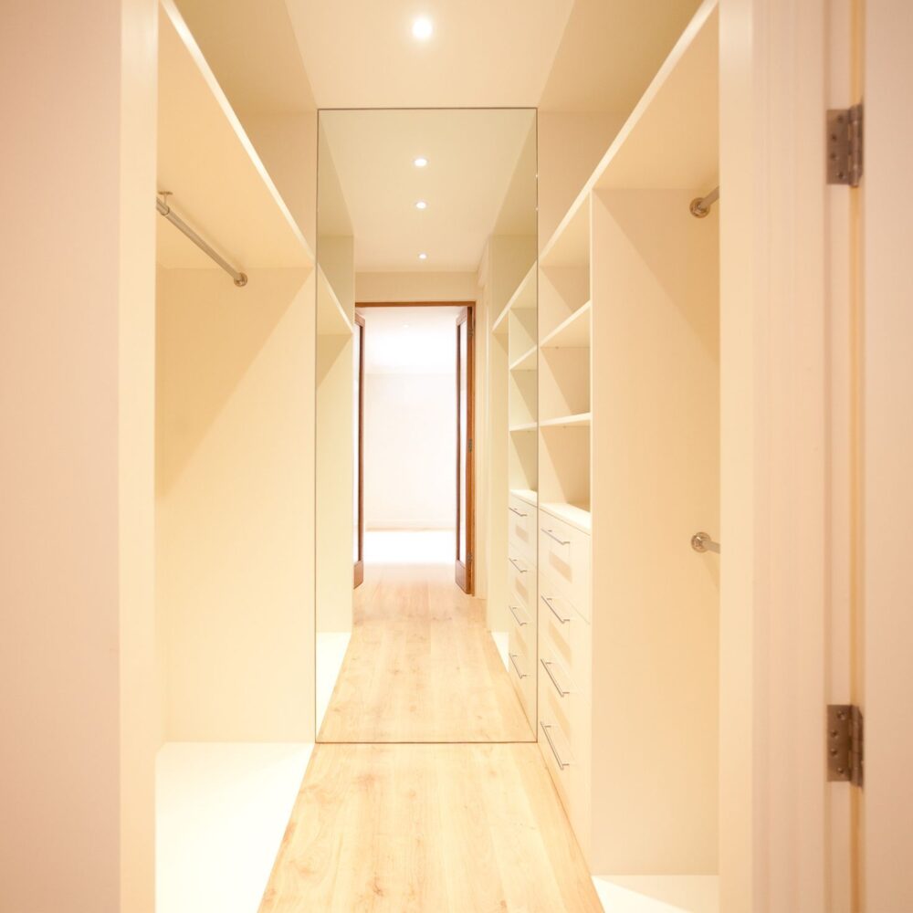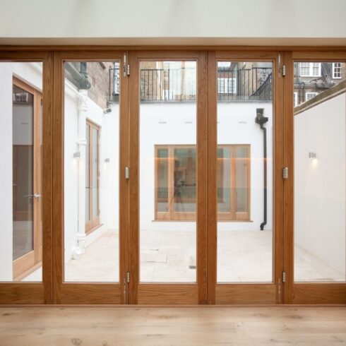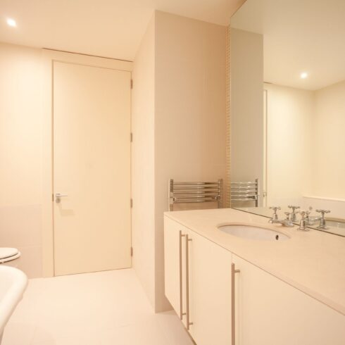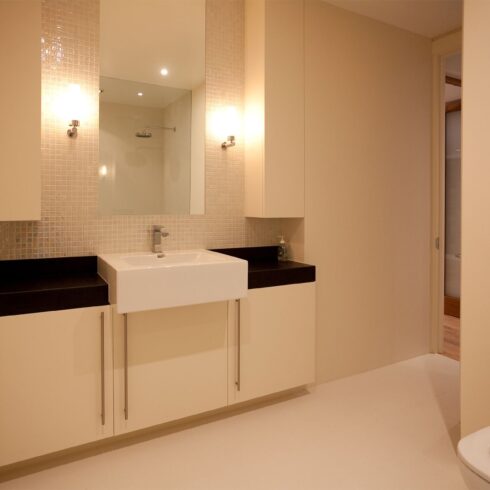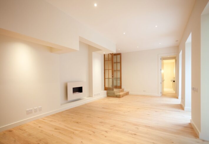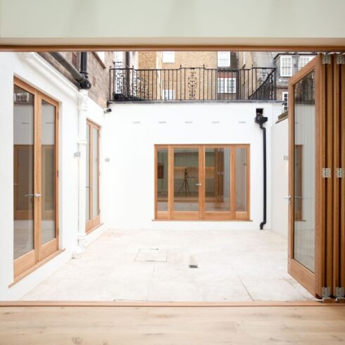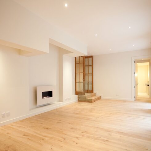 The owners of this stylish ground-floor apartment came to DKBS with a very specific set of goals: to maximise and expand the available living space and introduce more natural light throughout the property. Some meticulous planning and cutting edge interior architecture enabled the major technical challenge of replacing internal structural walls with steel frames & beams, and the introduction of a spectacular new glass-roofed kitchen that opened onto an outside central terrace area by way of full-length sliding doors. An inspired design that created a light and airy focal point in the hub of the home and a peaceful oasis of calm hidden away from the comings and goings of city life.